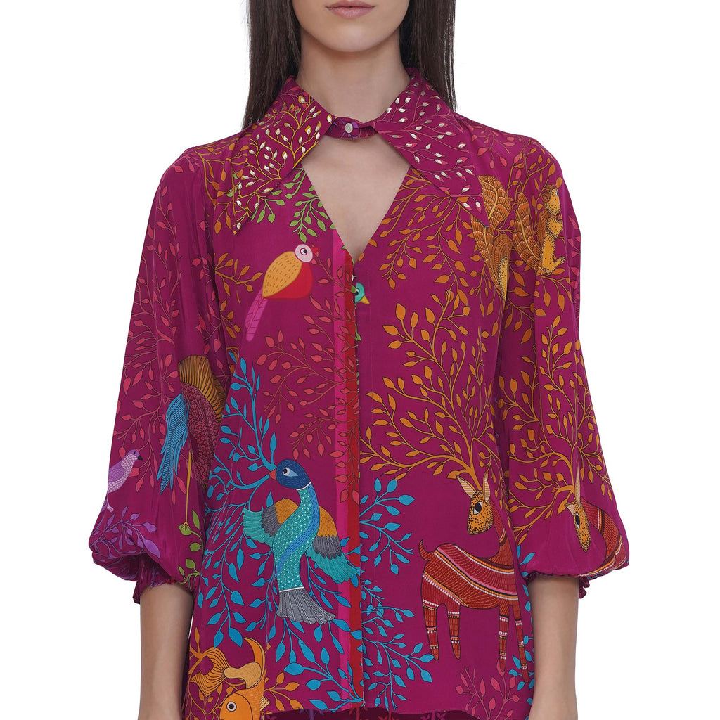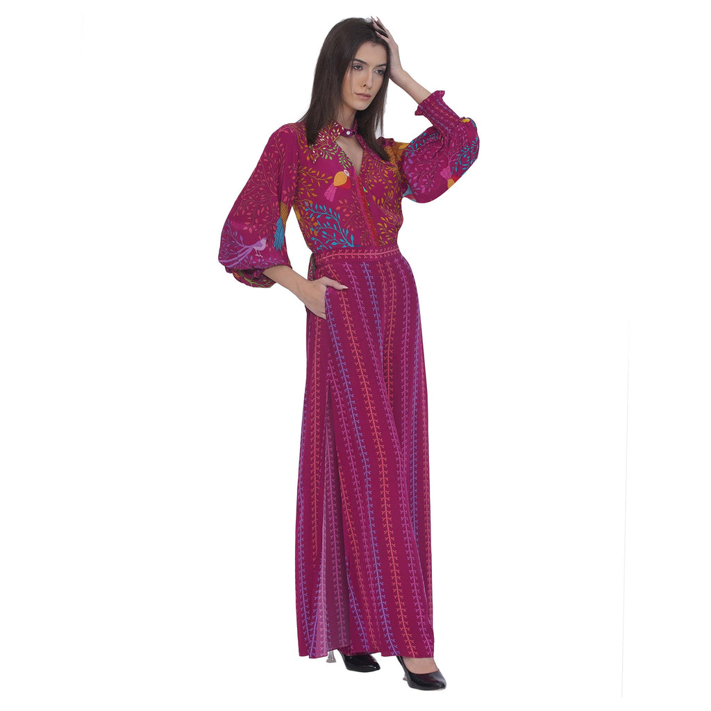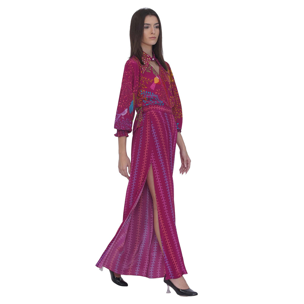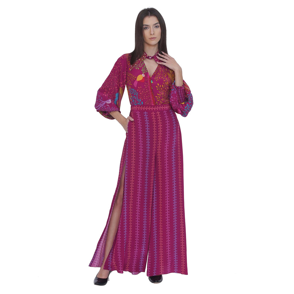 Make a striking statement with these flared pants, showcasing intricate placement prints inspired by the rich artistry of Gond and Madhubani. Designed with elegant side slits, they exude effortless charm, offering a perfect blend of cultural heritage and modern style.
