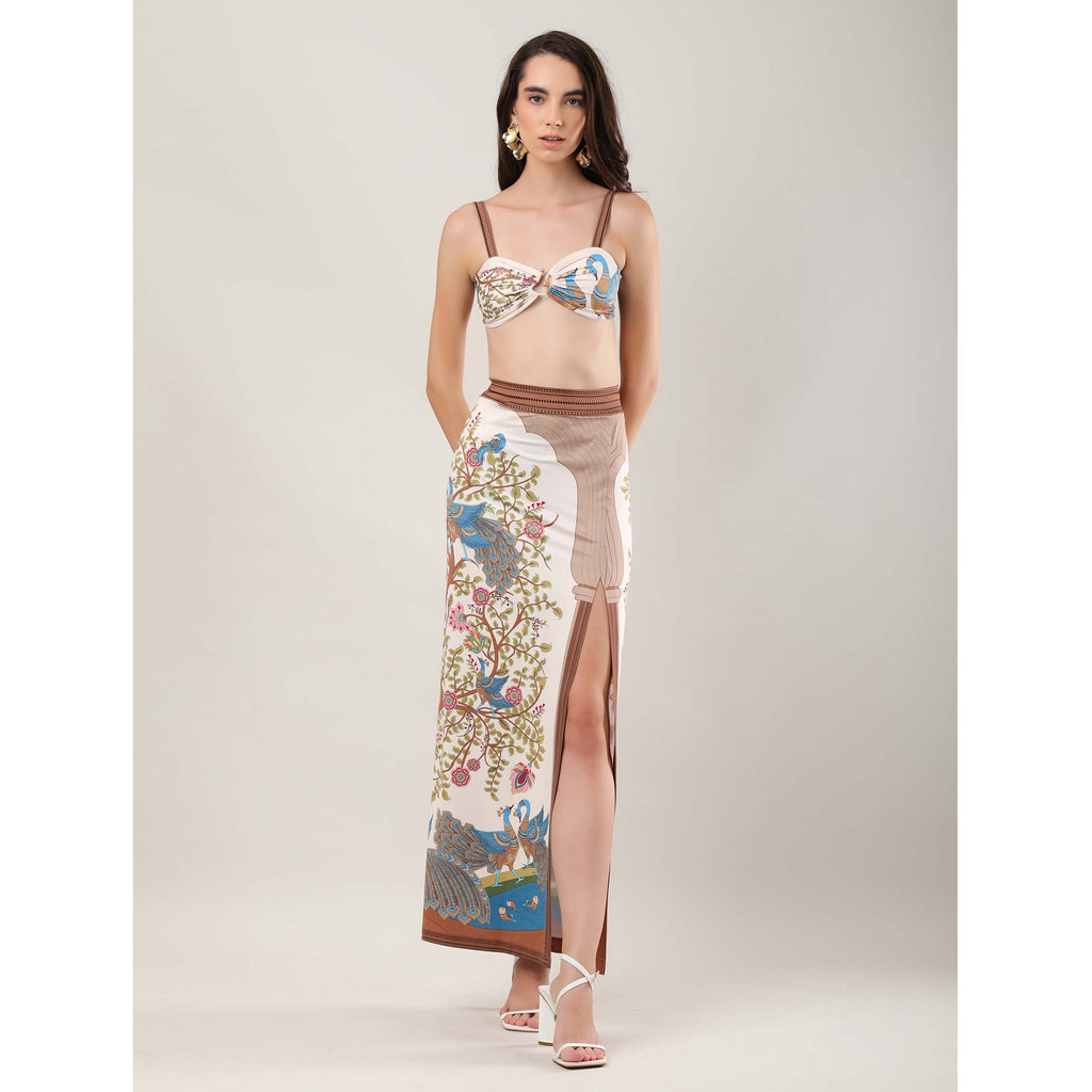 The Mariner skirt effortlessly combines style and functionality, making it an essential for your beach or poolside wardrobe. Designed for a seamless transition from swimming to lounging, it adds a touch of elegance to every sun-soaked moment. Adorned with artwork inspired by Shrikalahasti, it brings heritage artistry to contemporary resort wear.