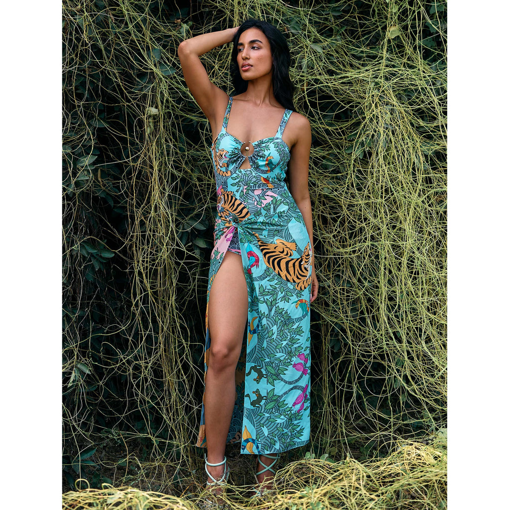 Add a touch of artistic elegance to your beachwear with our engineered print scarf, featuring artwork inspired by the vibrant motifs of Gond art. This versatile scarf is perfect as a cover-up, adding a layer of sophistication to your monokinis or bikini sets. Crafted from soft, lightweight fabric, it drapes beautifully and enhances your beach or poolside look with its striking, detailed artwork. The rich, cultural design brings a bold yet elegant statement, making it an ideal accessory for effortless styling.