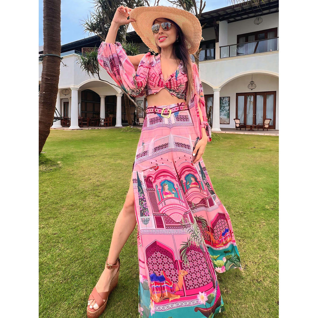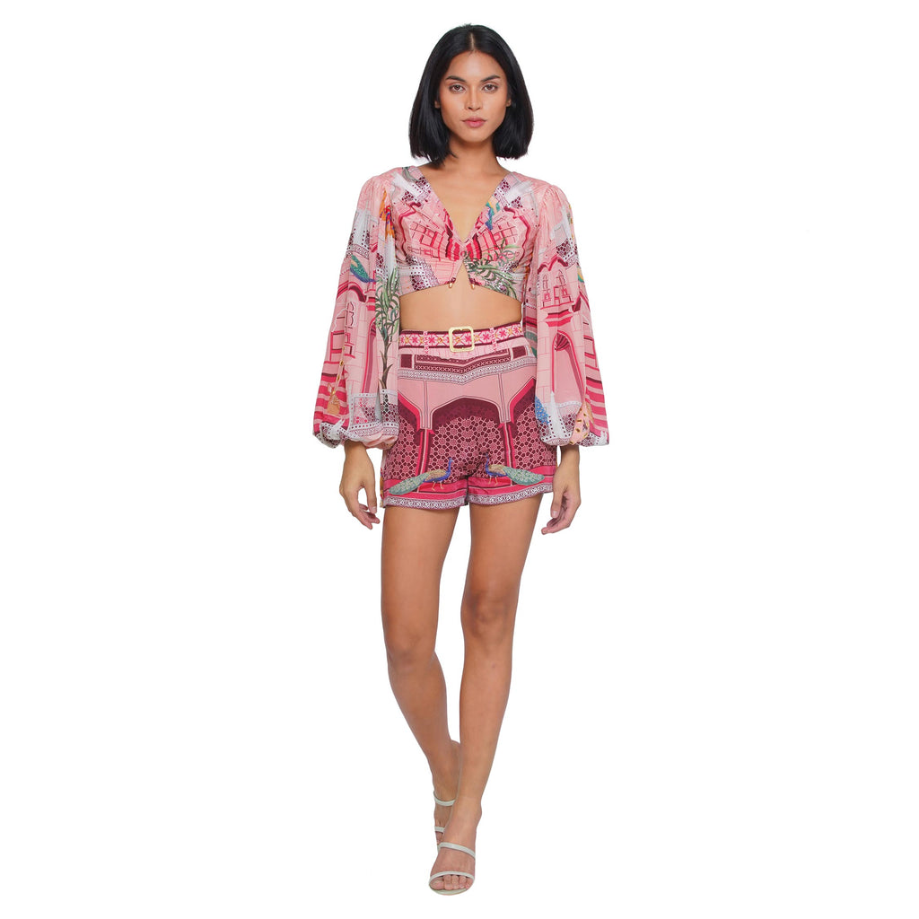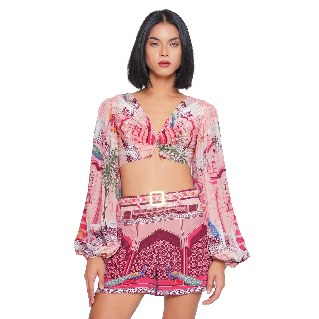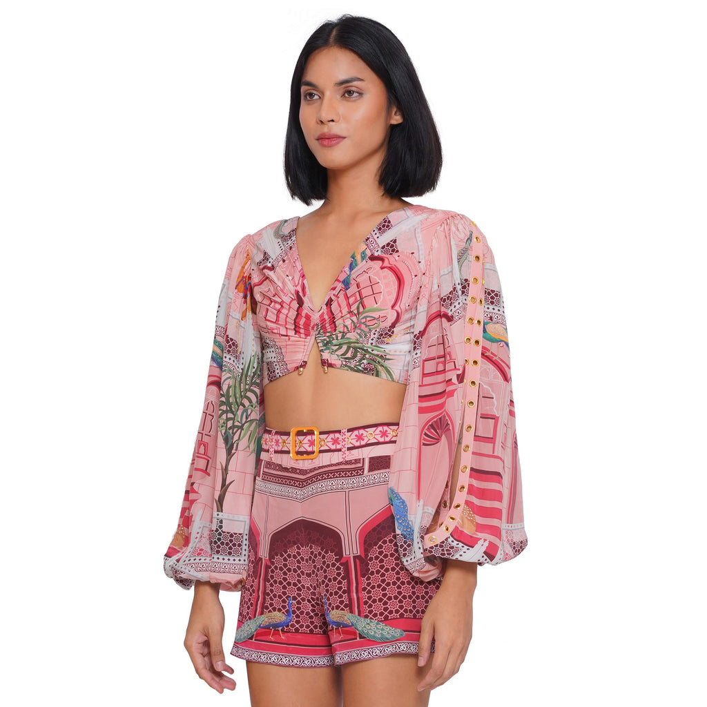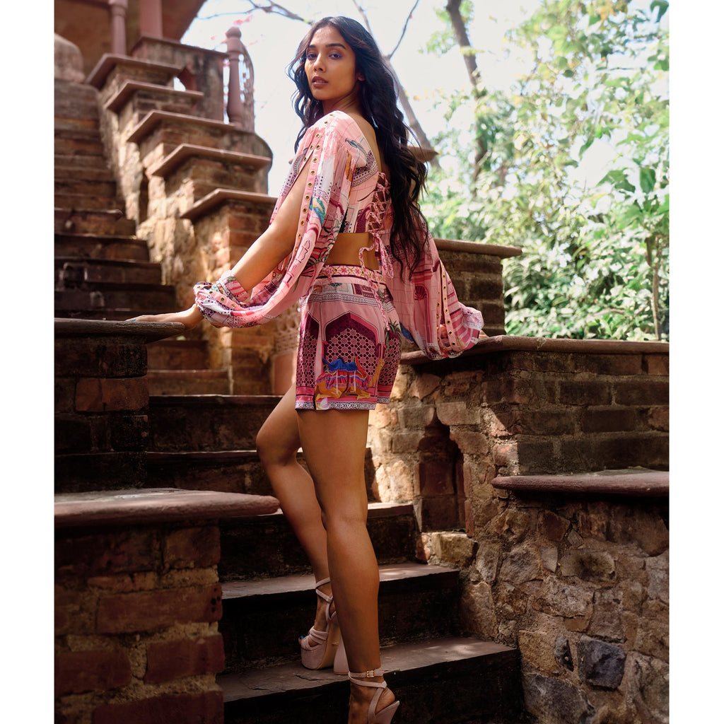 This print placement shirt artfully showcases chintz-inspired patterns, creating a harmonious and visually stunning fusion of tradition and contemporary fashion.