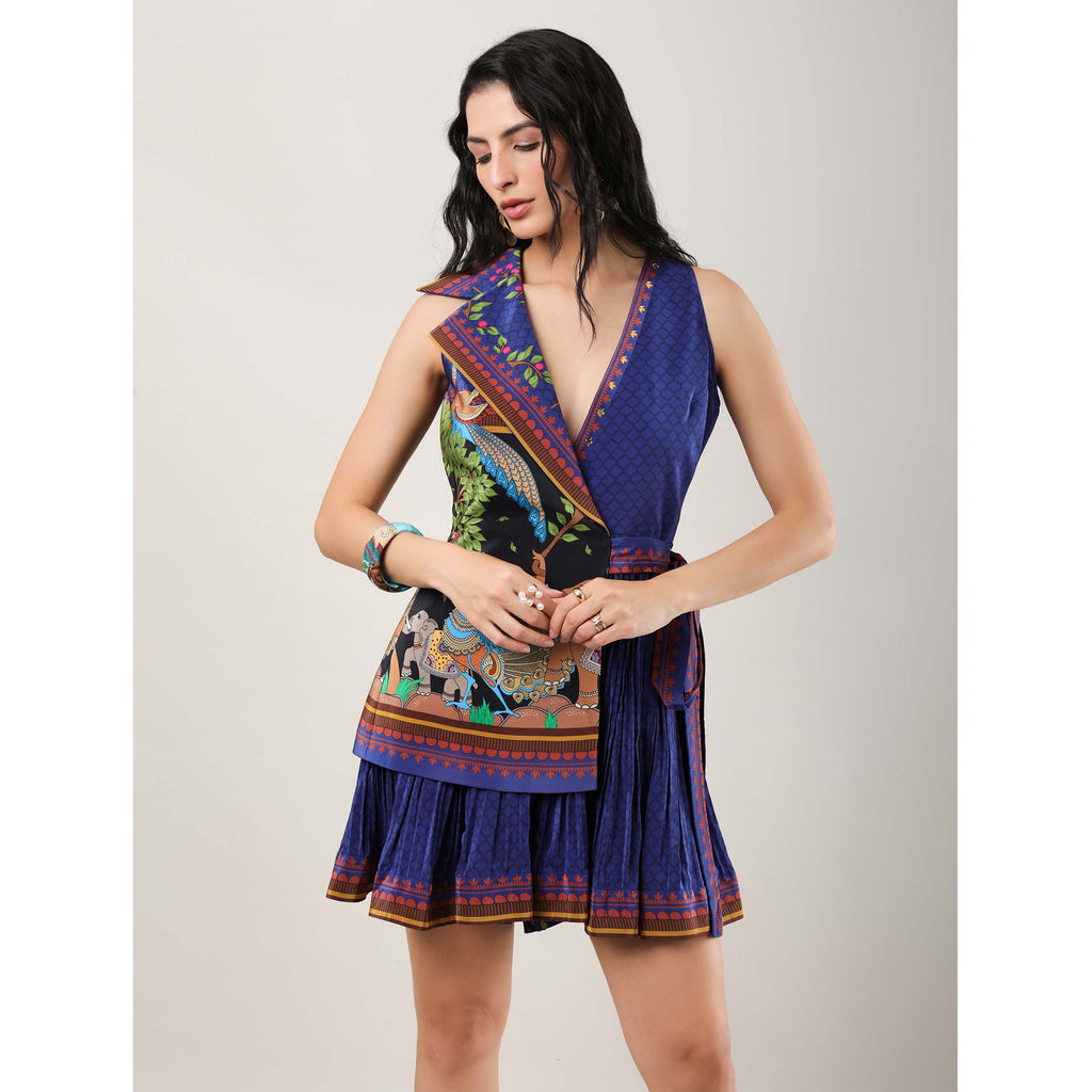Elevate your resort style with the Evira playsuit, brought to life with engineered prints inspired by the intricate beauty of Kalamkari art. Designed in luxe crepe, it features a finely embroidered collar that lends a touch of refinement to its contemporary silhouette. Blending artisanal detail with modern ease, this versatile piece transitions effortlessly from intimate gatherings to statement occasions.