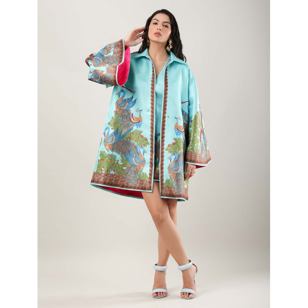 A Dorell dress meticulously crafted in luxe textured satin, showcasing engineered prints inspired by the timeless artistry of Kalamkari paintings. The rich texture of the fabric combined with the intricacy of the print creates a striking balance of tradition and modernity. Designed with a sleek, sculpted silhouette, this dress is perfect for formal gatherings, artful soirées, or upscale dinners — ensuring an impression of effortless sophistication.