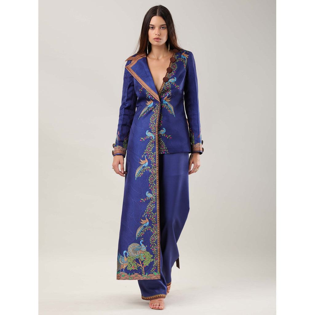 Embrace contemporary elegance in the Aralya pants, adorned with engineered prints inspired by the intricate artistry of Kalamkari. Designed with a fluid yet structured silhouette, these pants bring together comfort and sophistication, making them a versatile statement piece. Pair them with a solid bustier or coordinated separates for an effortlessly chic look that transitions seamlessly from day to evening.